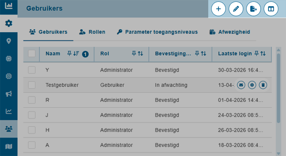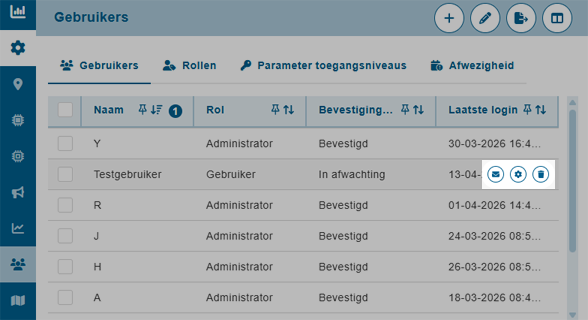Aan het einde van de regel kunt u per gebruiker een aantal acties uitvoeren, deze knoppen zijn ook te bereiken door met de rechtermuisknop op de gebruiker te klikken.